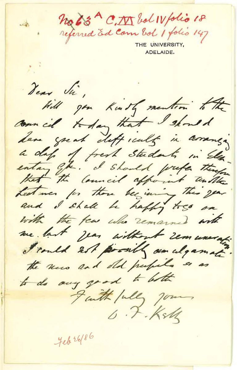 What also sets this collection apart from the collections of like institutions in Australia is its completeness. The documentation of the first 50 years of the University of Adelaide through the Registrar's correspondence represents the most comprehensive of the collections of comparable educational institutions in Australia.