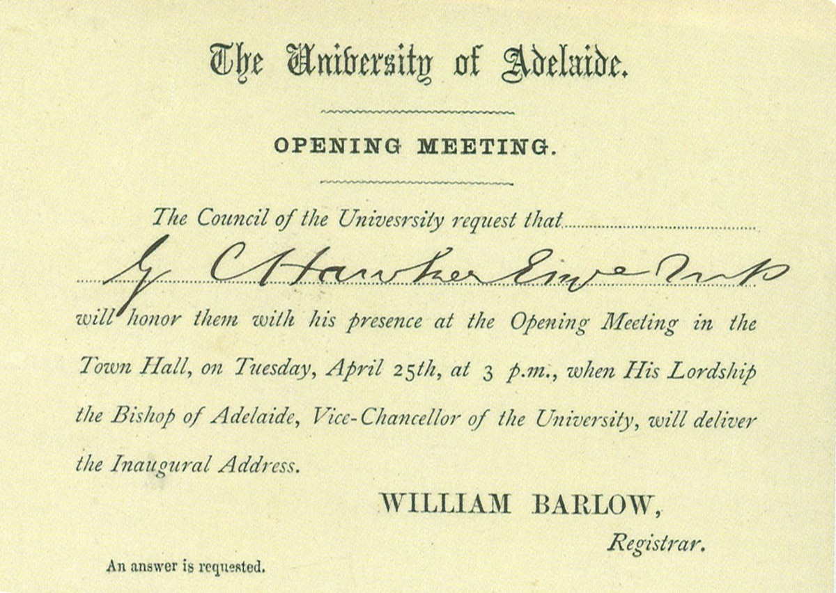 The Registrar's records are an irreplaceable primary source that provides documentary evidence of the foundation and development of the University as a key educational and cultural institution of South Australia. Such a claim could be made of many universities in Australia but few of these could draw on the close links with the history of the colony, and later state, where they are situated, that are demonstrated in these records.