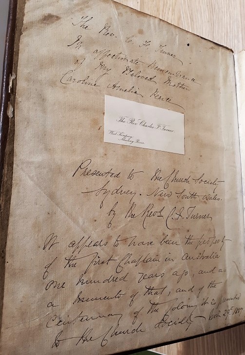 St James Bible, Book of Common Prayer and Cruden’s Concordance, three volumes originally owned by Richard Johnson, first Chaplain of the colony of New South Wales, and brought by him to Australia on the First Fleet, constitute this inscription.