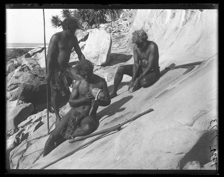 The Thomas Dick Birrpai Photograph Collection consists of more than 300 glass plate negatives and glass lantern slides held in the collections of the Australian Museum. They represent a substantial portion of around 500 images originally taken by Dick, the remainder of which do not appear to have survived. The images were taken between 1910 and 1920 by Thomas Dick, an oyster farmer and local historian in the Port Macquarie area on the mid-north coast of New South Wales. Dick took a series of staged portraits of local Birrpai people undertaking traditional food gathering, tool production and other activities as their ancestors had done before the Europeans arrived and probably until quite recently.